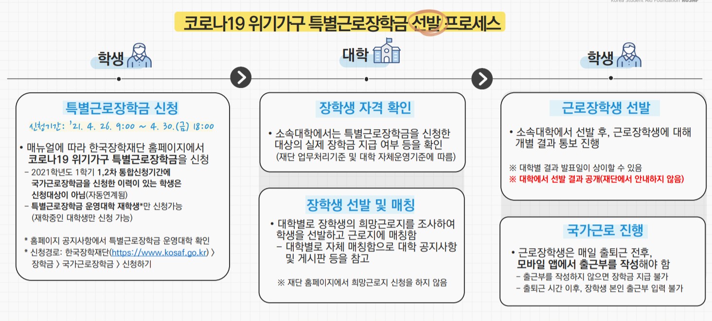 코로나 19 위기가구 특별근로장학금 선발 과정