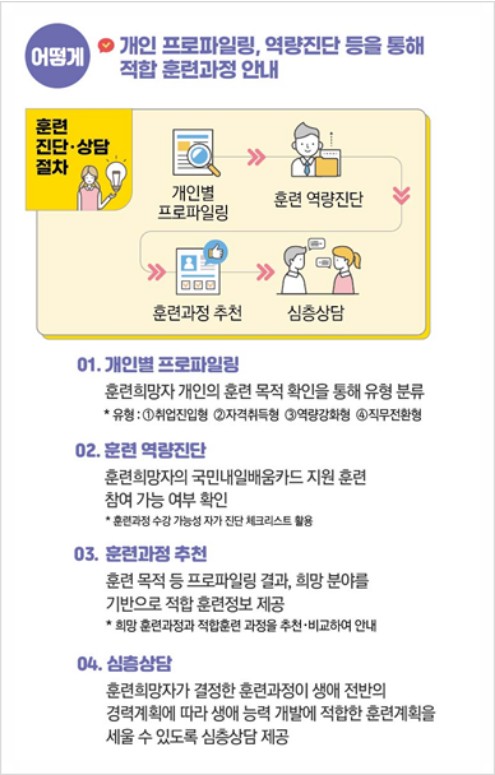 기존의 실업자용/재직자용 내일 배움 카드가 구분되었었지만 이제 하나로 '국민 내일 배움 카드'로 통합되었습니다.