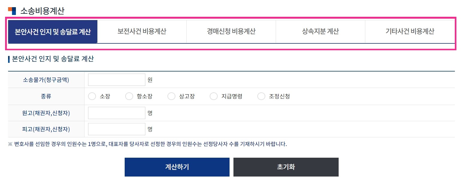 소송비용 자동계산