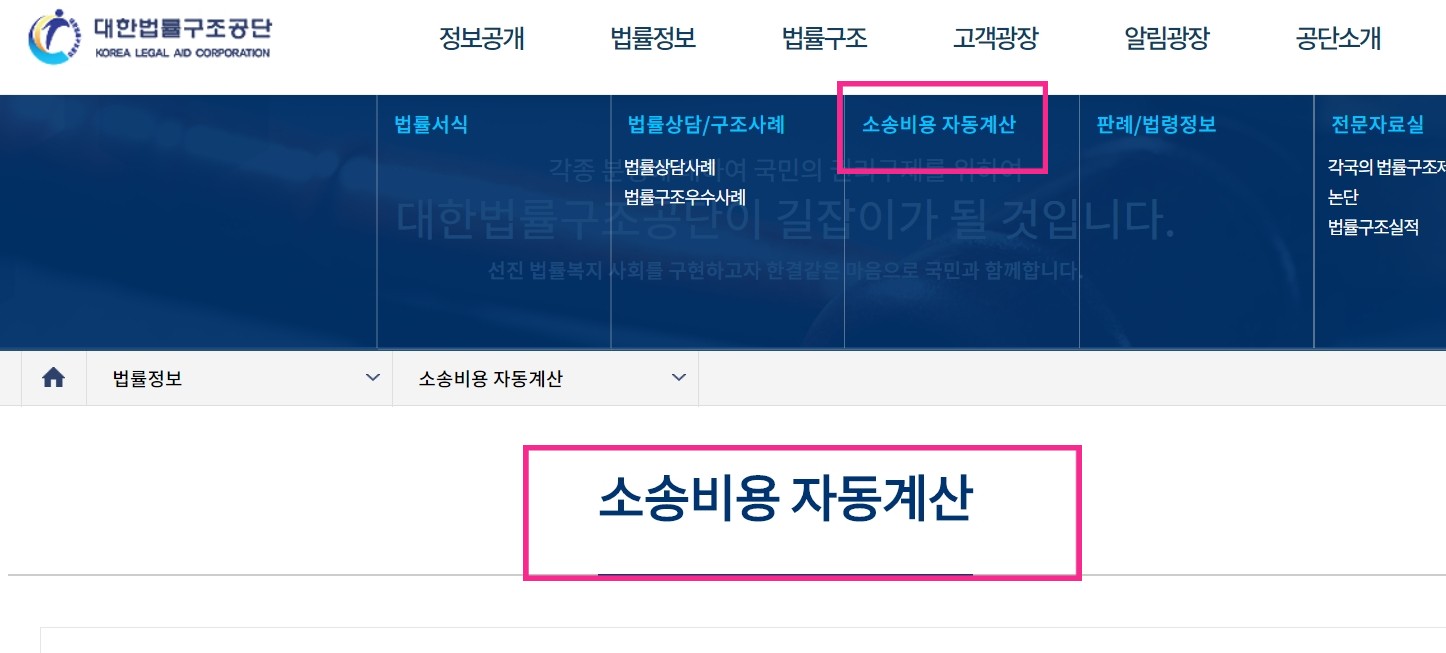 대한 법률구조공단에 가시면 대략적인 소송비용을 계산할 수 있습니다.