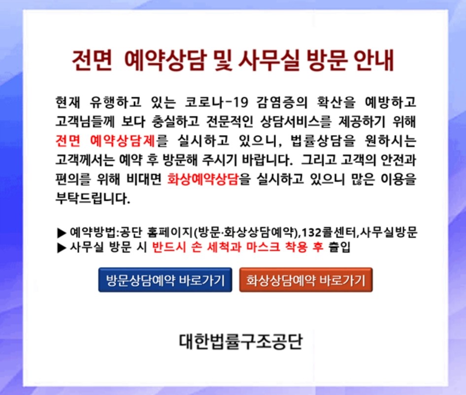 - 방문상담 : 공단 홈페이지에서 방문상담 예약 -예약일시 방문상담