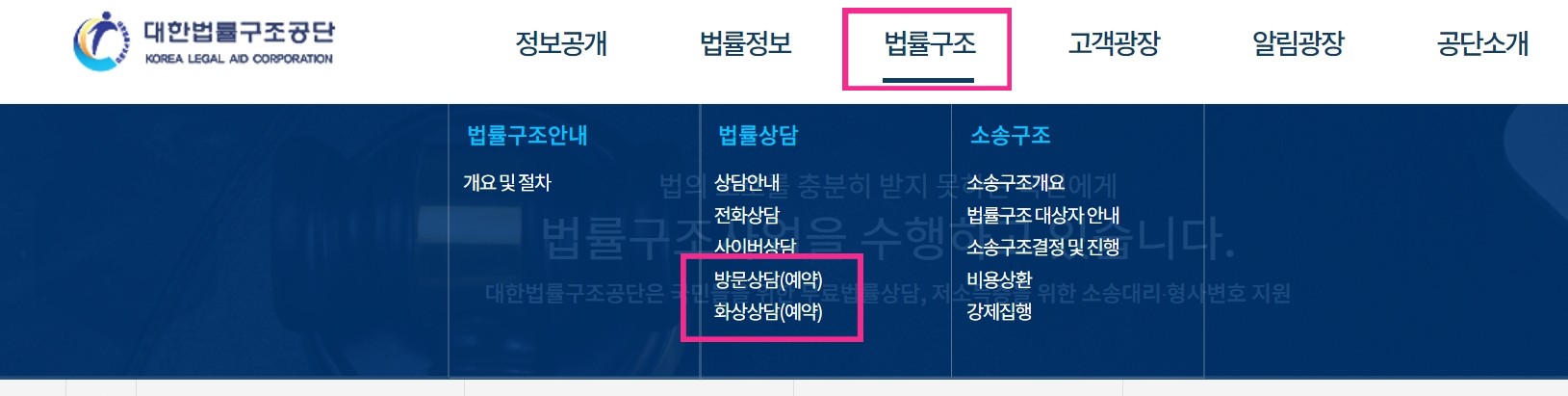 대한 법률구조공단 홈페이지 접속