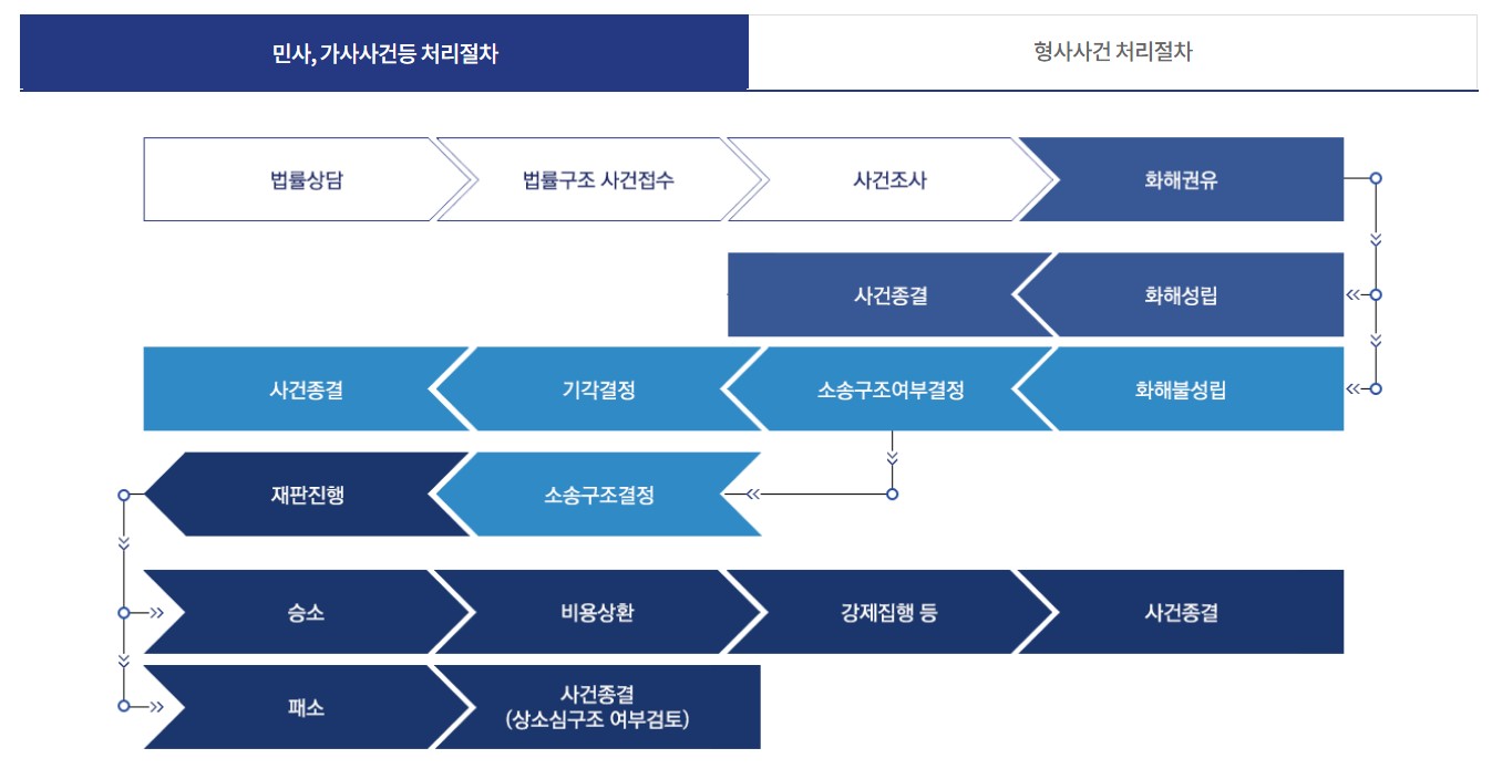 - 법률문제 전반(민사ㆍ가사, 형사, 행정 등)에 대한 법률상담은 모두 무료입니다.