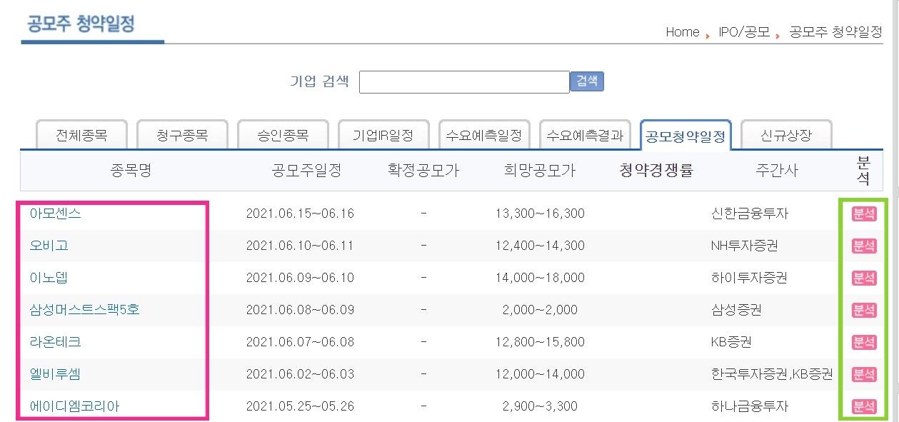 | 공모청약일 | 2021.06.15 ~ 2021.06.16 |