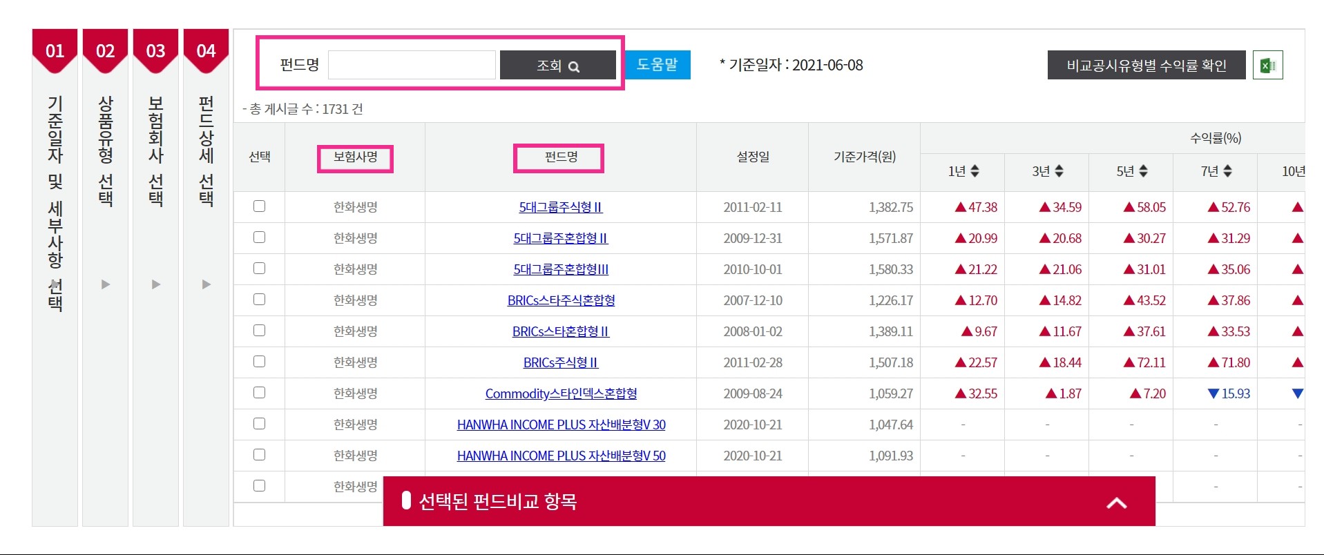 내가 가입한 보험회사를 선택해서 가입한 상품을 찾으면 내가 가입한 변액보험상품이 어떤 펀드에 투자를 하고 있는지 알 수 있습니다.