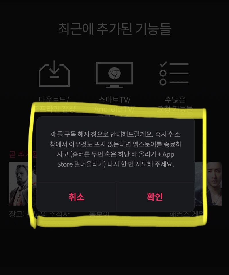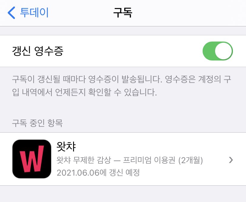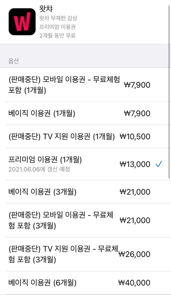 왓챠에서 구독은 아이폰 (애플) 구독과 연결이 되어있습니다.