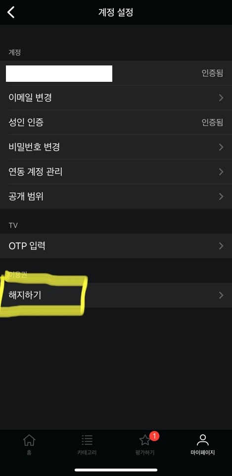 아하!! 맞다 왓챠 구독 취소부터 하고 와야지!!
