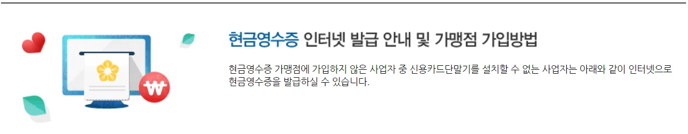간이과세자가 현금영수증 가맹점에 가입하지 않고 신용카드단말기를 설치할 수 없는 사업자일 경우에는 인터넷 홈택스를 통해서 현금영수증을 발급할 수 있습니다.