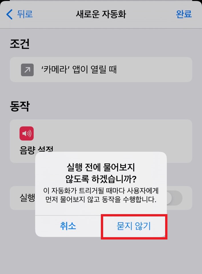 이 자동화가 트리거될때마다 아이폰 사용자에게 물어볼까요?