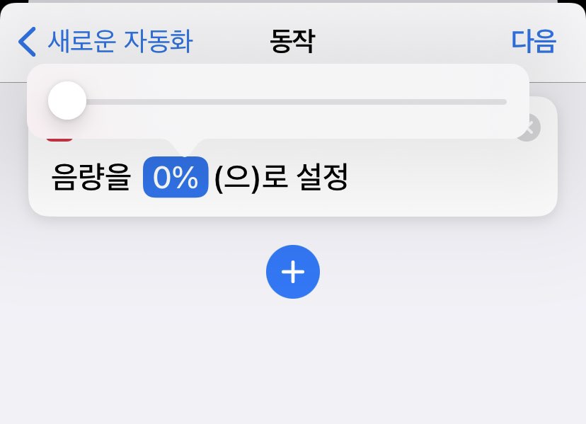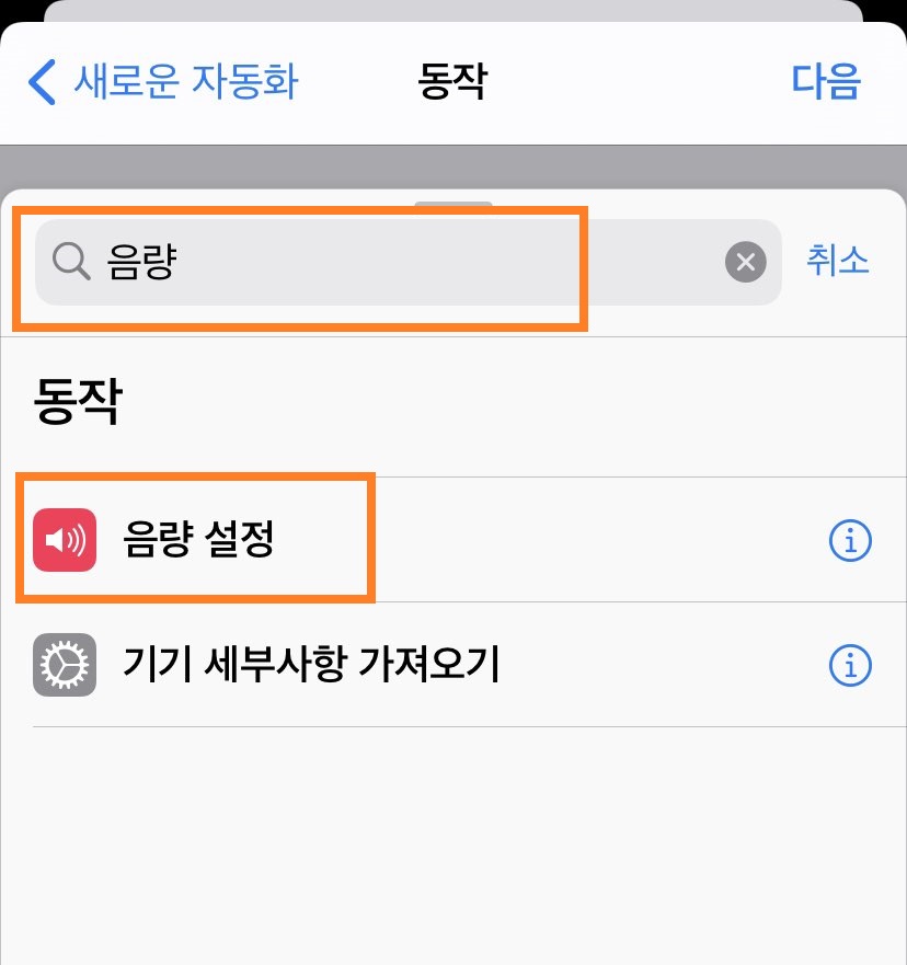 그러면 '동작'추가가 가능합니다. 검색창에 '음량'을 검색하시고 [음량 설정]을 선택합니다.