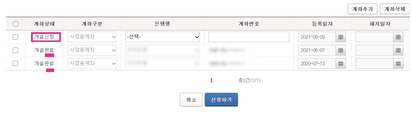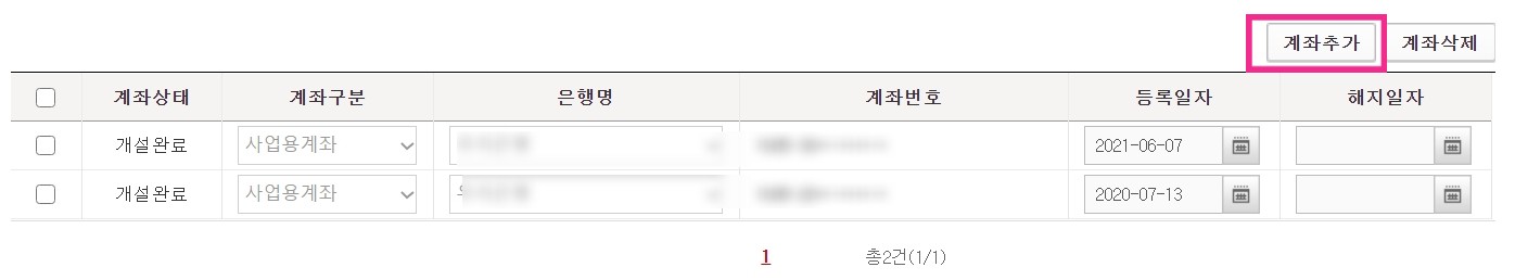 - 또한 사업장별로 복수계좌를 허용하고 있으므로 사업자의 필요에 따라 공동사업자 1인 또는 각각의
