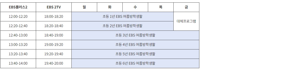 ○ EBS 초등 여름방학생활 : 2021년 8월 2일(월) ~ 2021년 8월 27일(금)