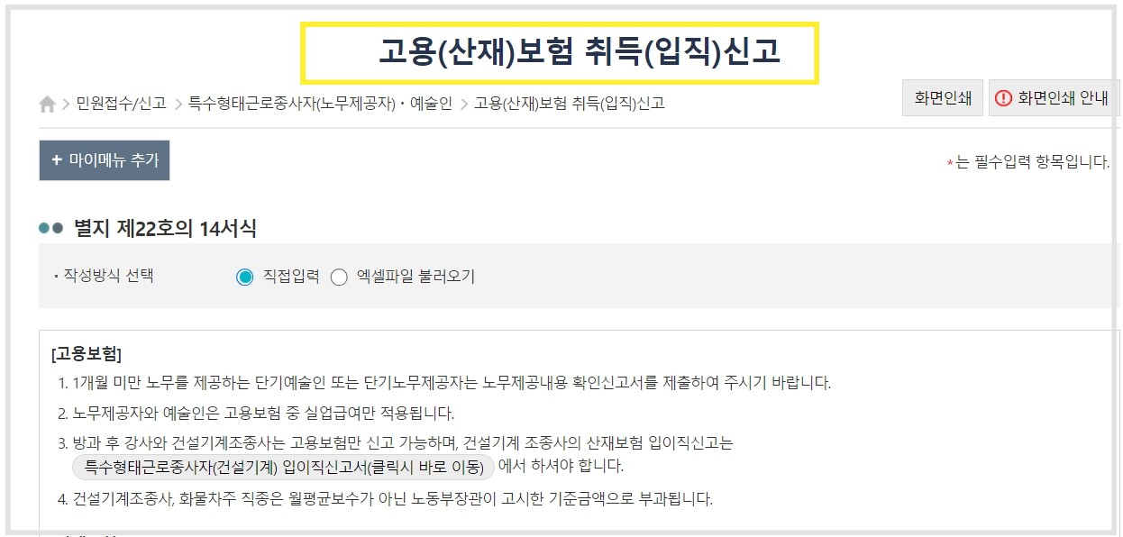 고용산재보험 토탈서비스(예술인 고용보험 성립신고)