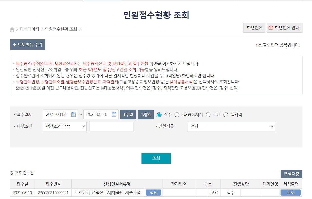 그러면 보험관계 성립신고가 완료가 됩니다.