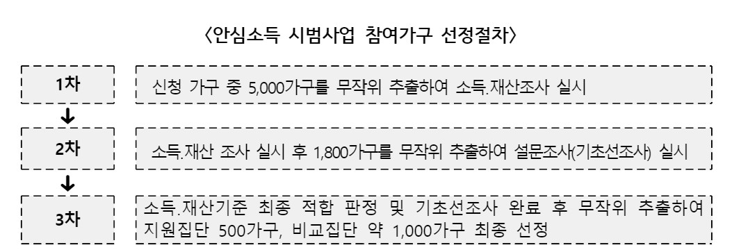 1차 선정된 5,000가구가 시범사업에 적합한 자격(소득ㆍ재산 기준 등)을 갖추었는지 확인하고, 무작위 선정