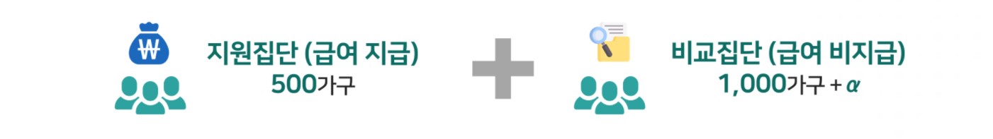 2차 선정된 가구 중 500가구는 3년 간 안심소득 급여를 지급받게 되고 1,000가구+α는 안심소득 급여 없이 설문조사 등의 연구 과정에만 참여하게 됩니다.