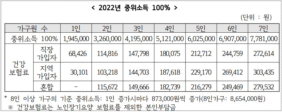 - (소득범위) 가구원에 포함된 본인·배우자·자녀의 건강보험료 합산