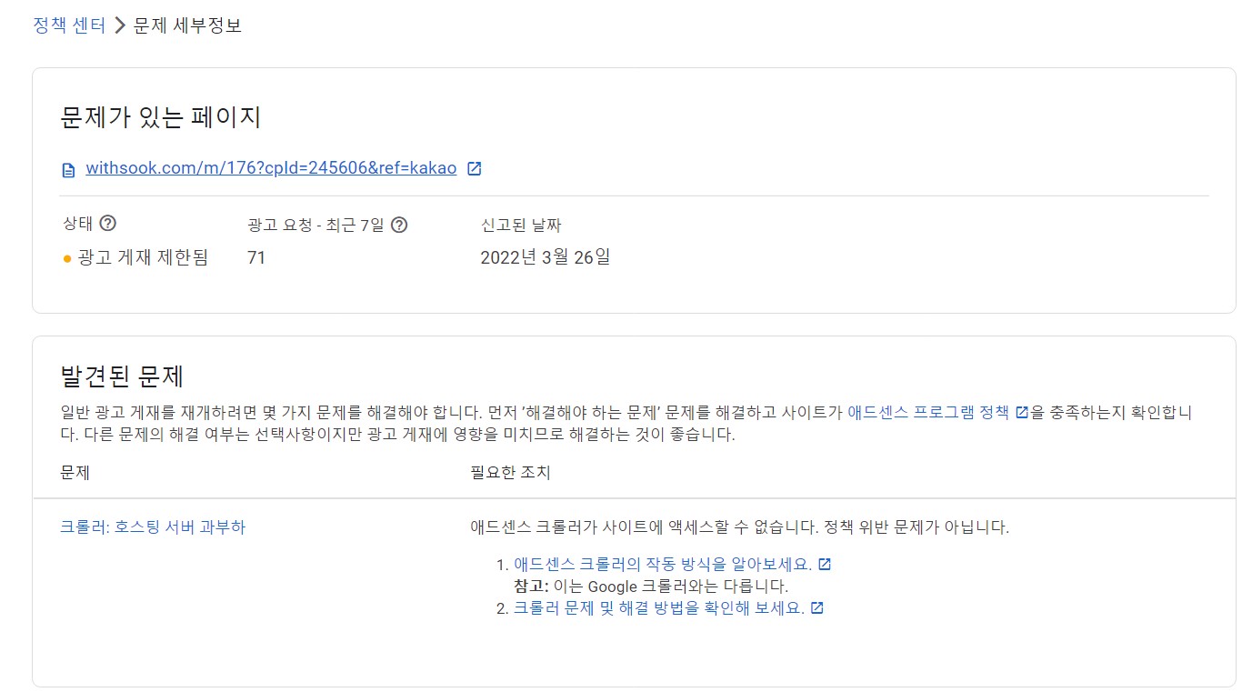 구글 애드센스 크롤러 오류 _ 호스팅 서버 과부하