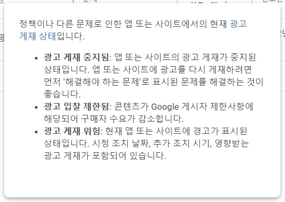 애드센스 자체에서 문제해결 버튼을 누르면 어느 정도 해결이 되더라고요.