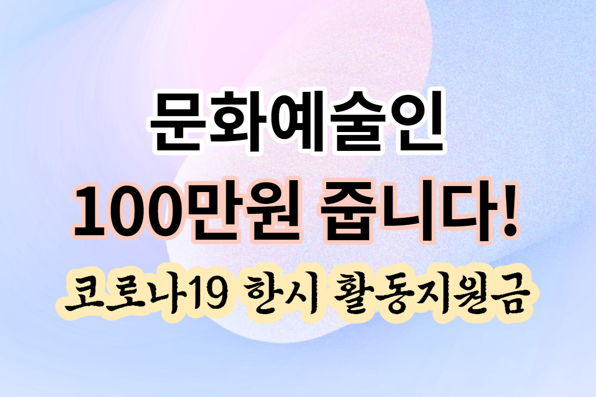 1인당 100만 원문화예술인 활동지원금 바로 지금 신청하세요!!