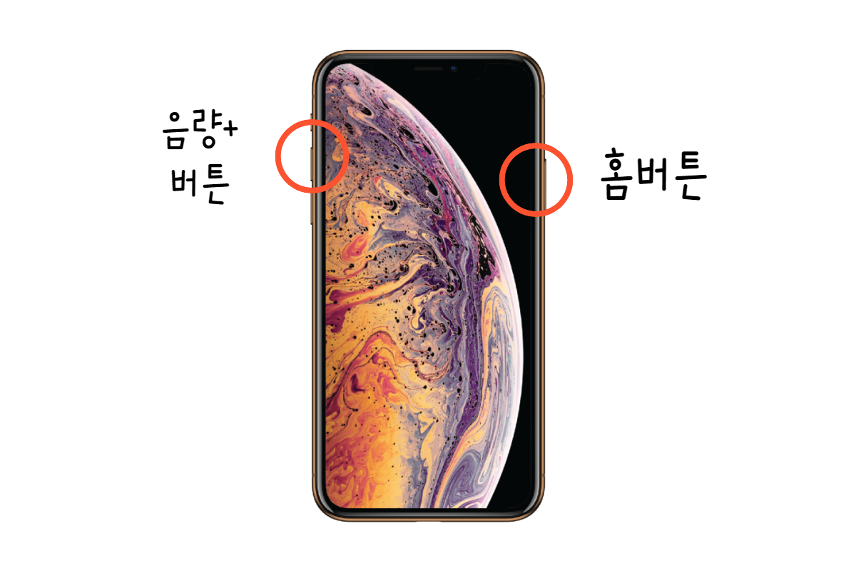아이폰 이전버전도 마찬가지이지만 대체적으로 [홈버튼]과 [음량+버튼]을 동시에 누르면 화면 캡처가 가능합니다. 가끔은 동시에 눌러지지 않아서 화면이 꺼지던가(홈버튼만 눌리는 경우) 음량만 높아지던가 하는 경우가 허다합니다.