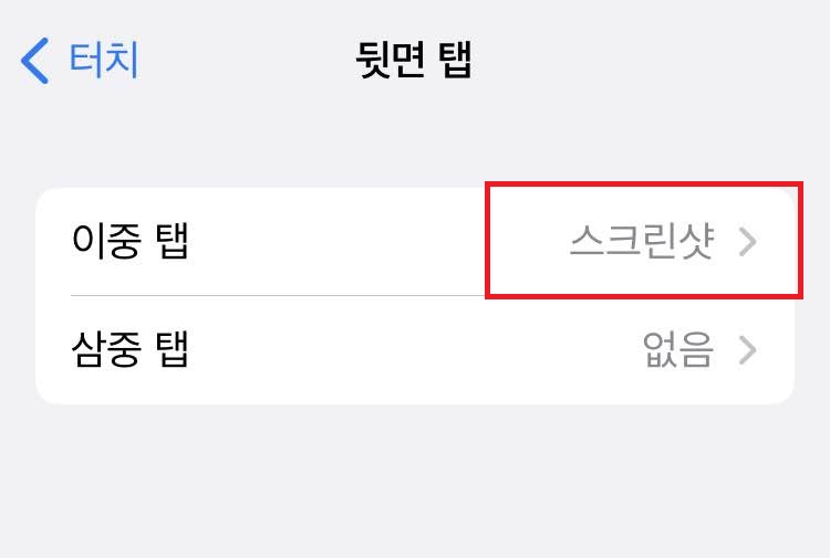 뒷면 탭의 [이중 탭]은 뒷면을 2번 톡톡 터치하면 기능이 활성화되게 하는 것입니다. [이중 탭]에는 제가 오늘 설정해야 하는 [스크린샷] 즉, 화면 캡처 기능이 아니라 다양한 기능들이 많습니다. 혹시 [스크린샷] 기능이 아니고 보시다가 다른 기능으로 활용하고 싶으신 분들이 계시면 그것으로 설정하셔도 무관합니다.