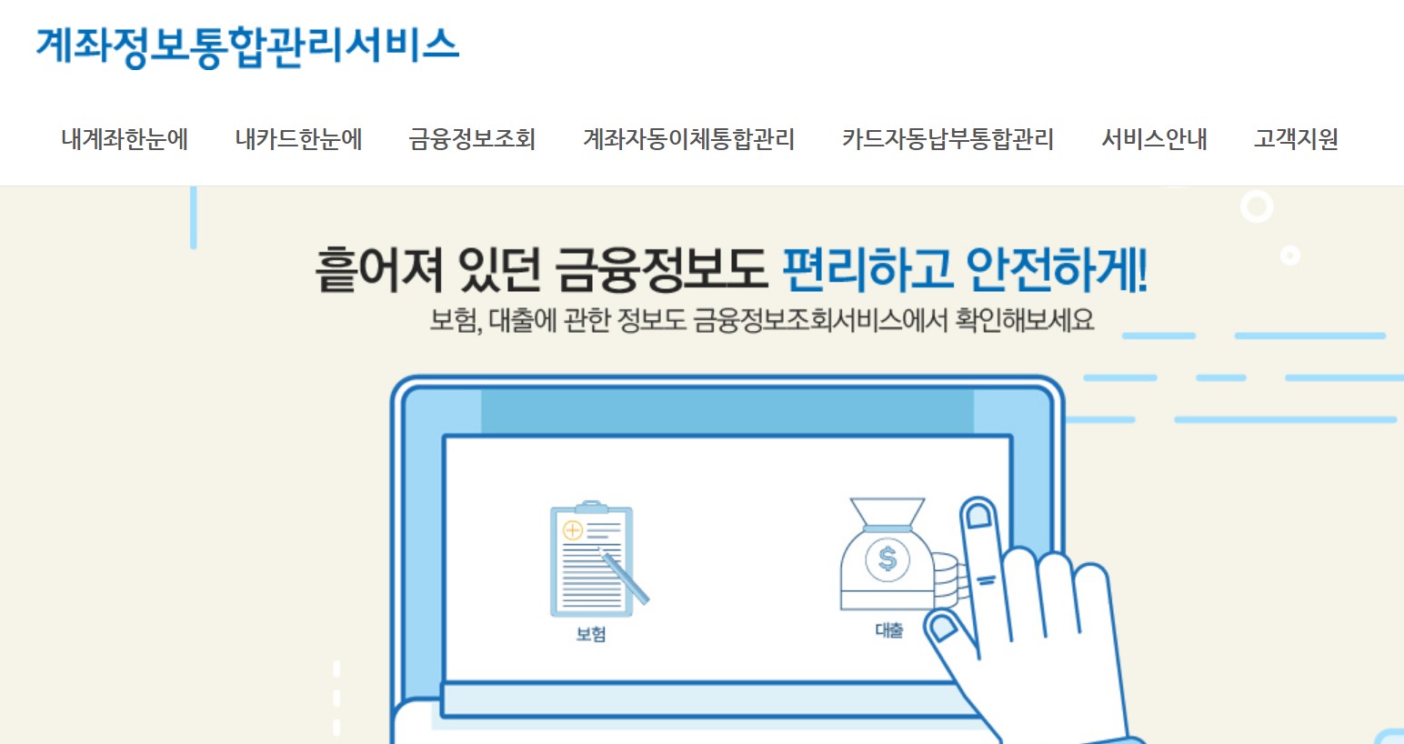 이 홈페이지는 전국 은행연합회에서 은행, 우체국, 보험사, 서민금융진흥원에서 보유한 계좌를 조회할 수 있으며, 사용하지 않는 휴면계좌를 조회해주고 잔고를 확인해서 입금해줍니다.