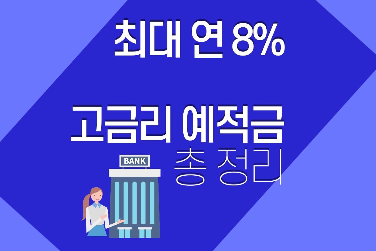 은행, 저축은행, 상호금융 등 금융권에서 속속들이 고금리 예적금 상품을 출시하고 있습니다. 최고로 8% 고금리 상품이 있으니 오늘 알려드리는 상품들 살펴보시고 관심 가지시기 바랍니다.