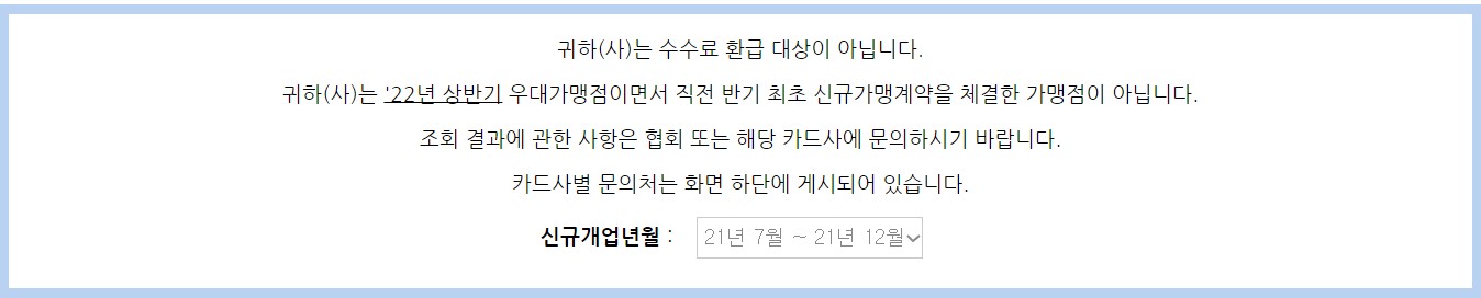 이처럼 신규 카드 가맹점으로 등록한 후 6개월이 지난 시점의 해당 분기에서 나온 카드 수수료에 대한 환급이 진행됨을 알 수 있습니다.
