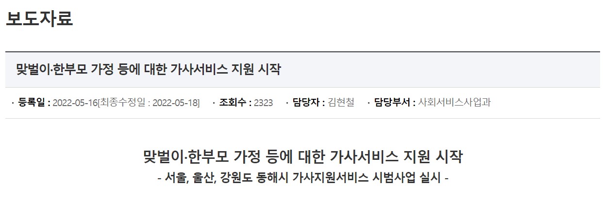 정부예산을 사용해 '개별 가정'의 가사 도우미를 지원하는 것이 처음입니다. 지속적인 서비스 수요 발굴로 누구에게나 보편적인 사회서비스가 확대 대길 기대합니다.