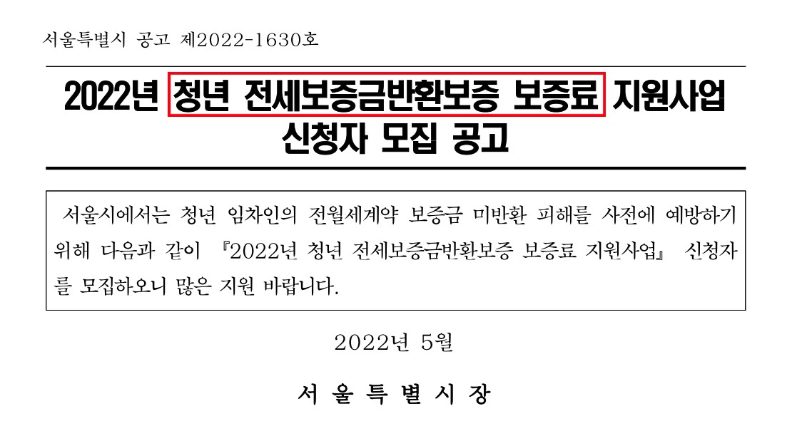 2022 청년 전세보증금반환보증 보증료 지원 사업