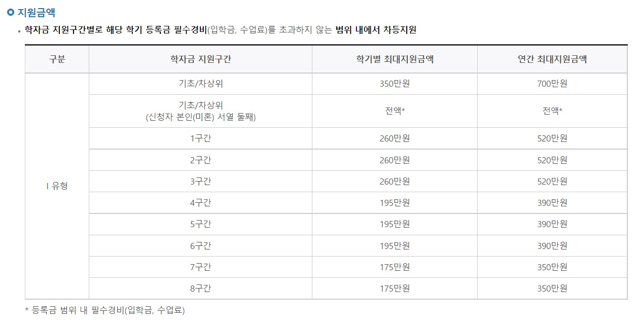※ 학자금 지원 구간 1~9구간 학생에 한하여 지원