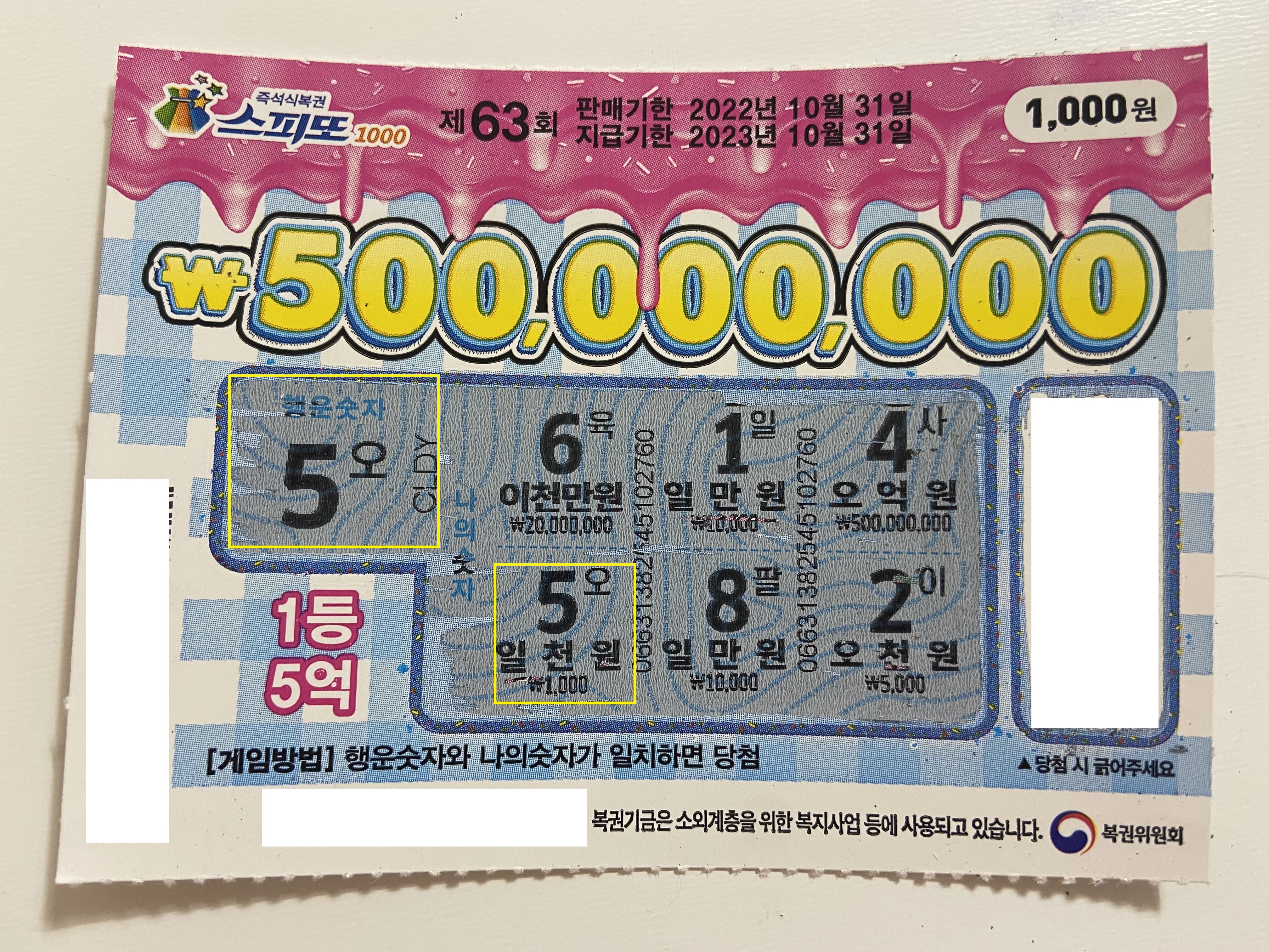 사실 저도 최근에 스피또 1000에서 5천 원 당첨이 나오길래 웬일인가 했더니 출고율에 비해 당첨자가 별로 안 나왔기 때문이 아닐까? 했습니다. (물론 확인된 사실이 아닌 개인의 의견입니다.)