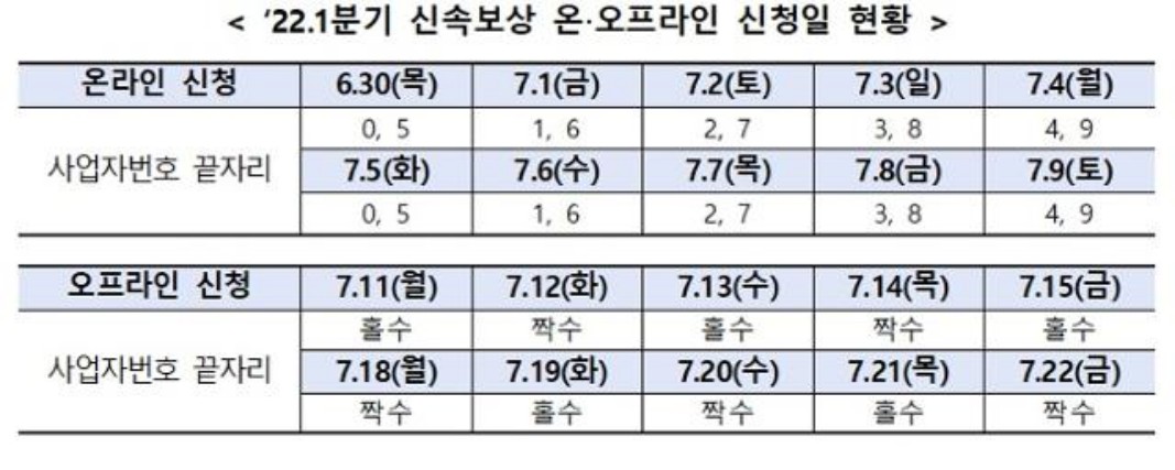 21년 3분기 손실보상금 정산 대상자로서 21년 4분기 보상 절차가 진행 중인 사업체는 올해 1분기 신속 보상 대상자라고 합니다.
