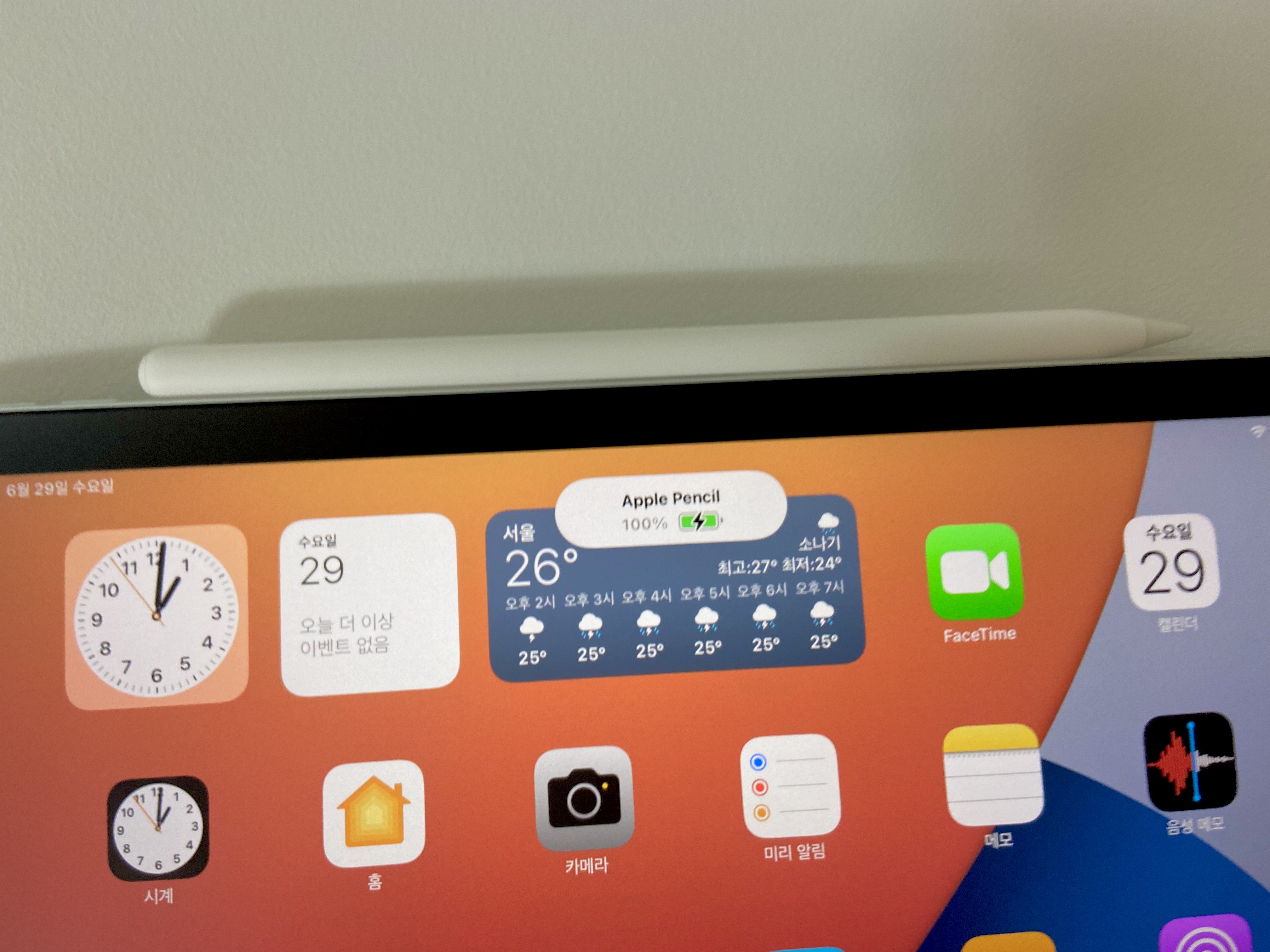 애플 펜슬을 사용하다가 '일반 펜'처럼 책상에 올려놓으실 경우는 배터리가 방전돼서 애플 펜슬이 패드에 자동으로 인식되지 않을 수 있습니다.