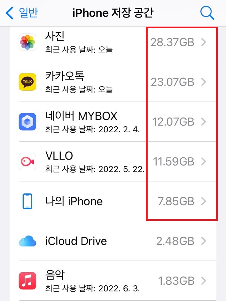 사실은 이 중에서 가장 효과적인 방법은 내 IPhone에 있는 사진, 동영상 이 아닐까 합니다. 요즘은 사진과 동영상 촬영을 많이 하시기 때문에 저장공간이 부족한 것은 사실이지요.