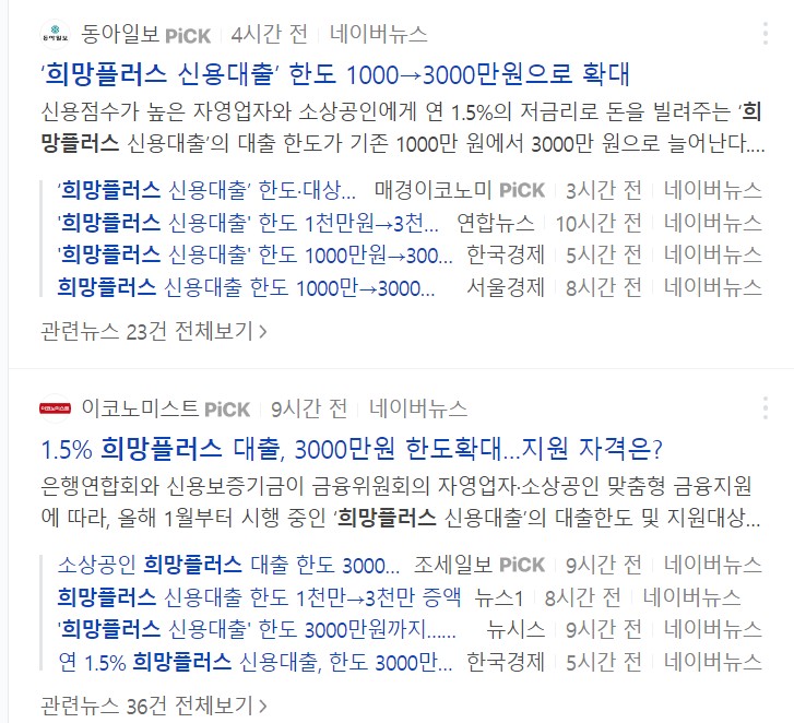 고금리에 1%대의 저금리가 적용되는 희망플러스 신용대출의 한도가 1000만 원에서 3000만 원으로 늘어난다는 소식입니다. 손실보전금 수급자도 대상자가 된다고 하니 자영업자분들께서는 알고 계시면 좋습니다.