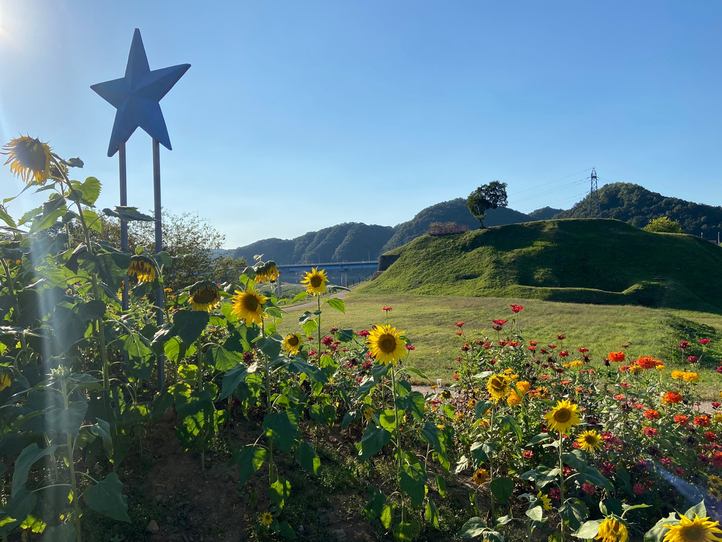 해바라기를 둘러싼 꽃은 '백일홍'으로 추정이 됩니다. 백일홍이 해바라기 밭을 아름답게 받쳐주고 있더라고요~