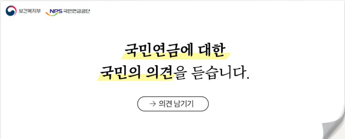 국민연금관리공단에 '국민의견'을 모으는 설문을 하고 있으니 많은 분들이 좋은 의견을 내주시면 좋을 것 같습니다.