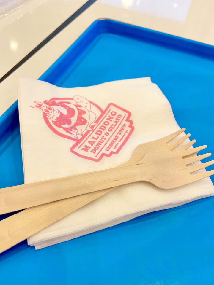 가격은 7500원으로 생각보다(?) 많이 비싼 편은 아니더라고요. 냅킨의 디자인과 포크도 귀여워요.