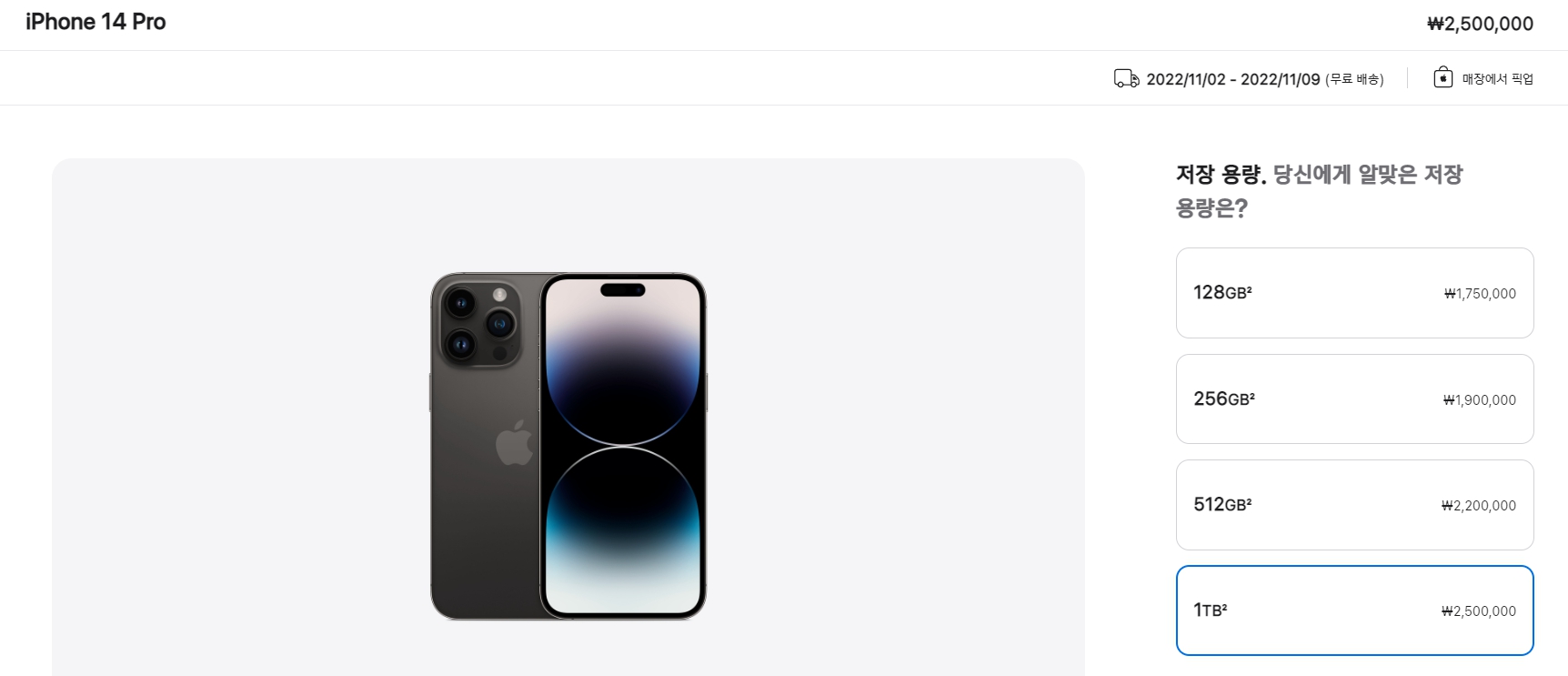아이폰 14 프로 1TB 250만 원인데 쿠팡으로 사시면 최종 혜택가가 211만 원입니다. 거의 39만 원이나 저렴하게 구매가 가능합니다.