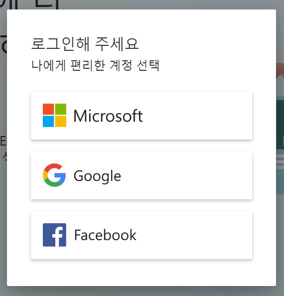 기존에 다른 웹이랑 연동해 로그인 가능합니다. 저는 구글 아이디로 로그인했습니다.