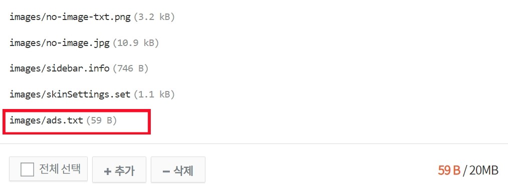 하단에 추가 버튼을 사용해 아까 저장해두었던 ads.txt파일을 삽입합니다.