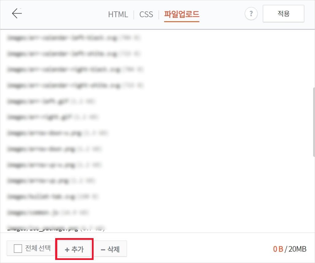 내가 업로드한 파일이 잘 추가되었는지 확인하시고 적용을 누릅니다.
