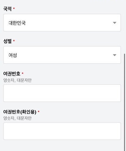 이용등록에서는 '여권정보'가 필요합니다. 등록을 마친 후에는 입력한 내용을 확인하고 편집이 가능합니다.