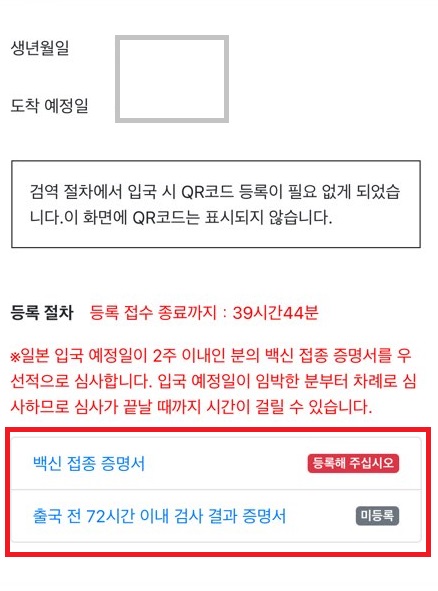 가장 중요한 부분입니다. 현재 일본에서는 '코로나백신접종 증명서'가 필수입니다. 사전등록이 가능하니 등록해서 승인을 받고 혹시 모를 증명서 1장을 프린트해 가시기 바랍니다.