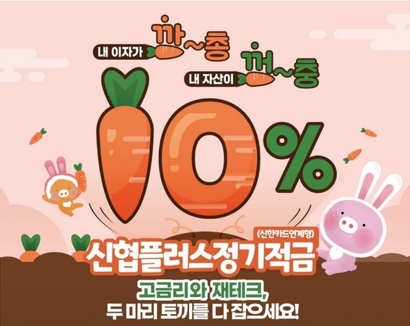 은행 예적금 금리가 다시 인하되는 시점에 신협에서 연 10%의 고금리 상품이 출시되었습니다. '신한 플러스 정기적금'인데요~ 가입 안 하면 손해일 신협 고금리 적금에 대해서 알아보겠습니다.