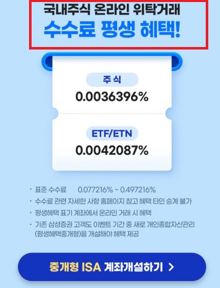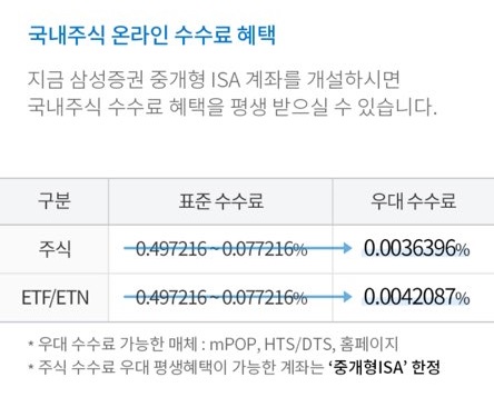 삼성증권 중개형 ISA 국내주식 수수료 평생혜택 이벤트