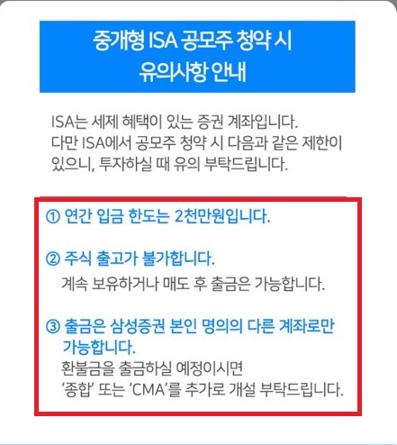 저는 이미 주식투자를 삼성증권에서 하기 때문에 그냥 중개형 ISA 만 만들었습니다.