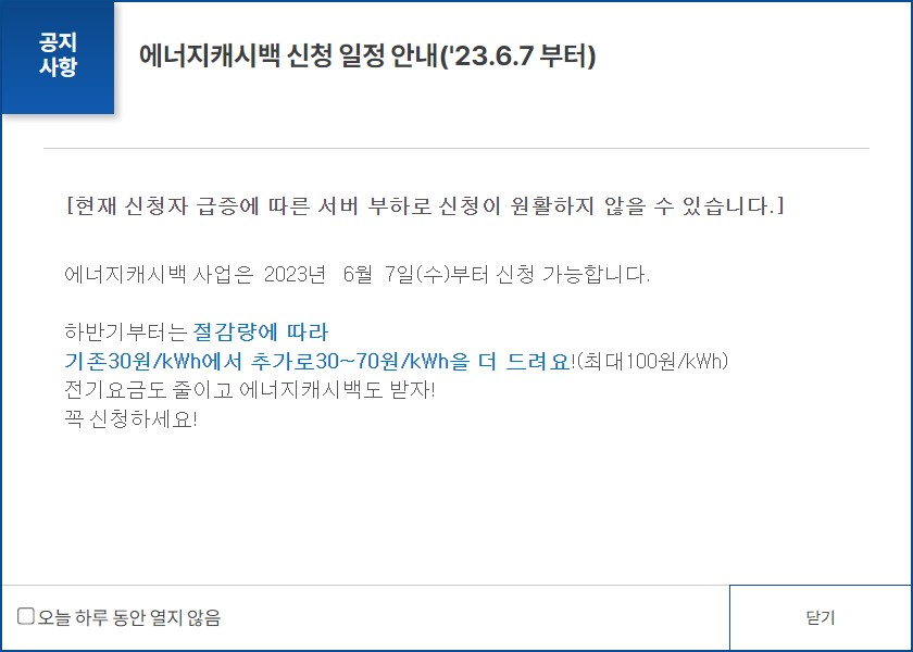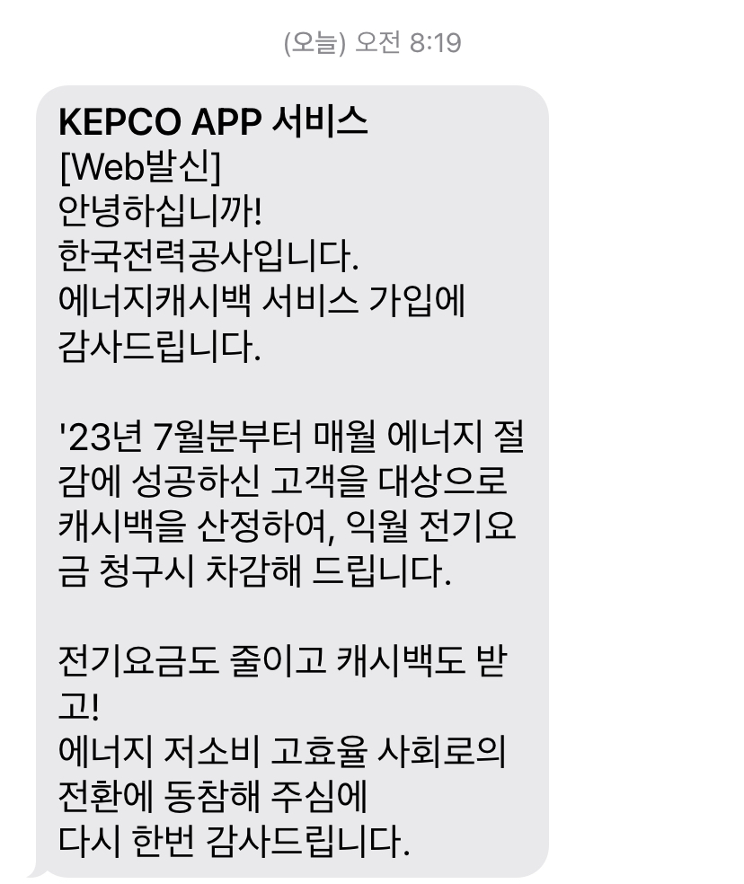 7월부터 전기요금 절약에 성공한 고객을 대상으로 캐시백을 산정하여 전기요금 차감을 해준다고 하니~ 이렇게라도 전기요금을 절약해서 캐시백을 받아야겠습니다.